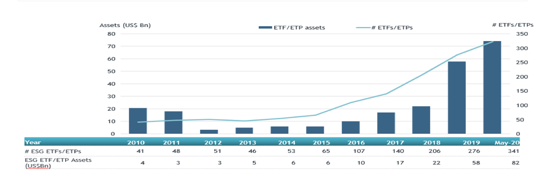 Global ESG ETF and ETP asset growth as at end of May 2020